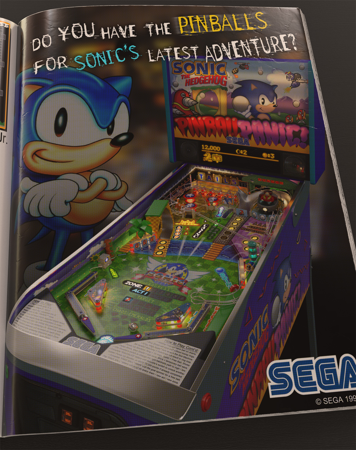 I can't keep going over the multitude of Sonic x Pinball crossovers, but suffice it to say: the idea of Pinball and Sonic go back to day zero. While thinking about how Mario got two physical Pinball machines and Sonic never got any, I started imagining how I might design a physical Sonic pinball machine. Slowly the idea started taking over my thoughts. Initially I just meant to make realistic Blender Render of what a 90's era Sonic Pinball may have looked like.