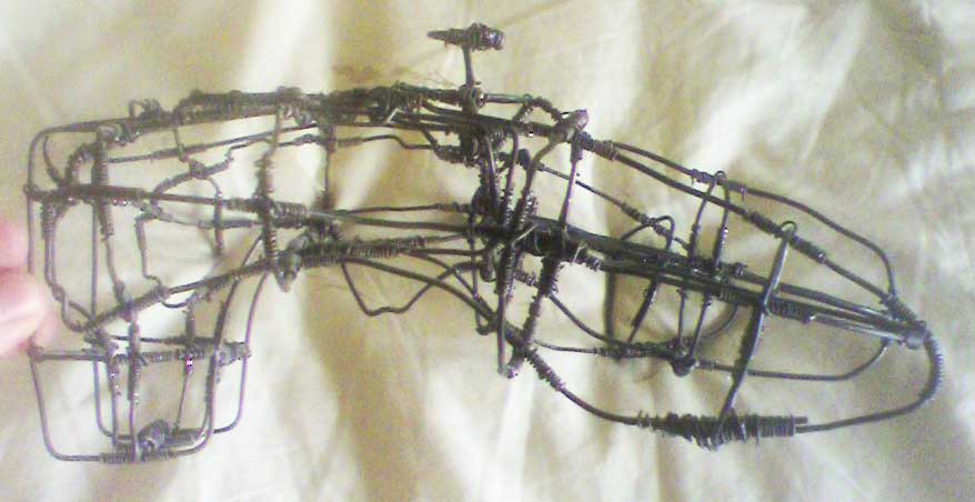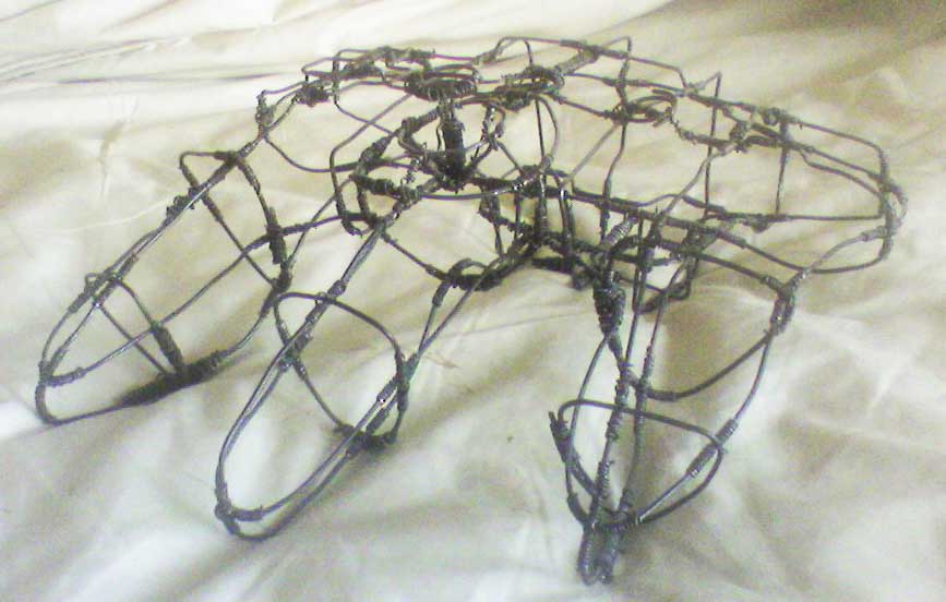 The reason all the buttons aren't there is because I didn't run a contour line to them. I would have had to run some very nasty, complicated wires just to be able to include them and it would muck up the over all feel of the project. Some day I'll probably add the buttons but not observing the professors rule “Contoured Edges Only.” Overall this was assembled in about 4 days with lots of tedious twisting.