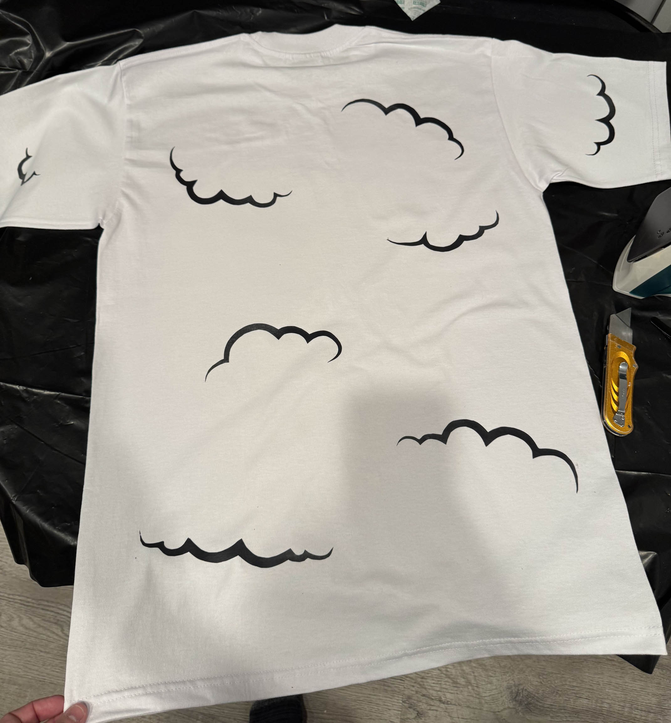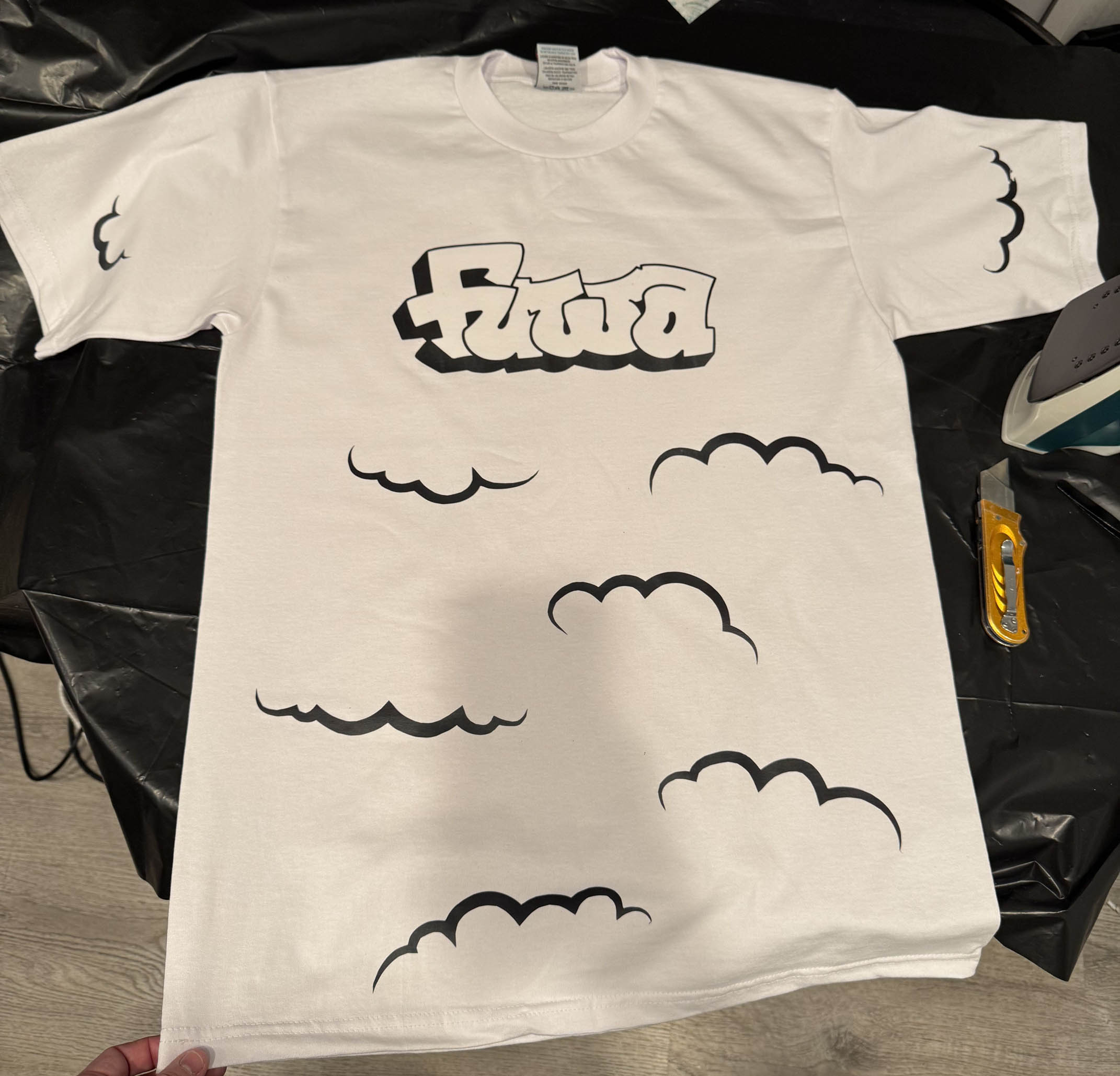 I later learned about a vTuber convention being hosted in San Jose California called Offkai. I used it as an excuse to visit my friends and family in California, but more importantly, a few vTubers I follow were going to be there - including Fuwa. I decided to make a custom shirt with the art & some curly lines to go with her sheep theme. This was the first time I've printed & cut custom heat transfers. The cool thing about this, is that the pattern can wrap around the shirt entirely, instead of being a fixed rectangle on the front and back like traditional screen printing or online t-shirt printing services.
