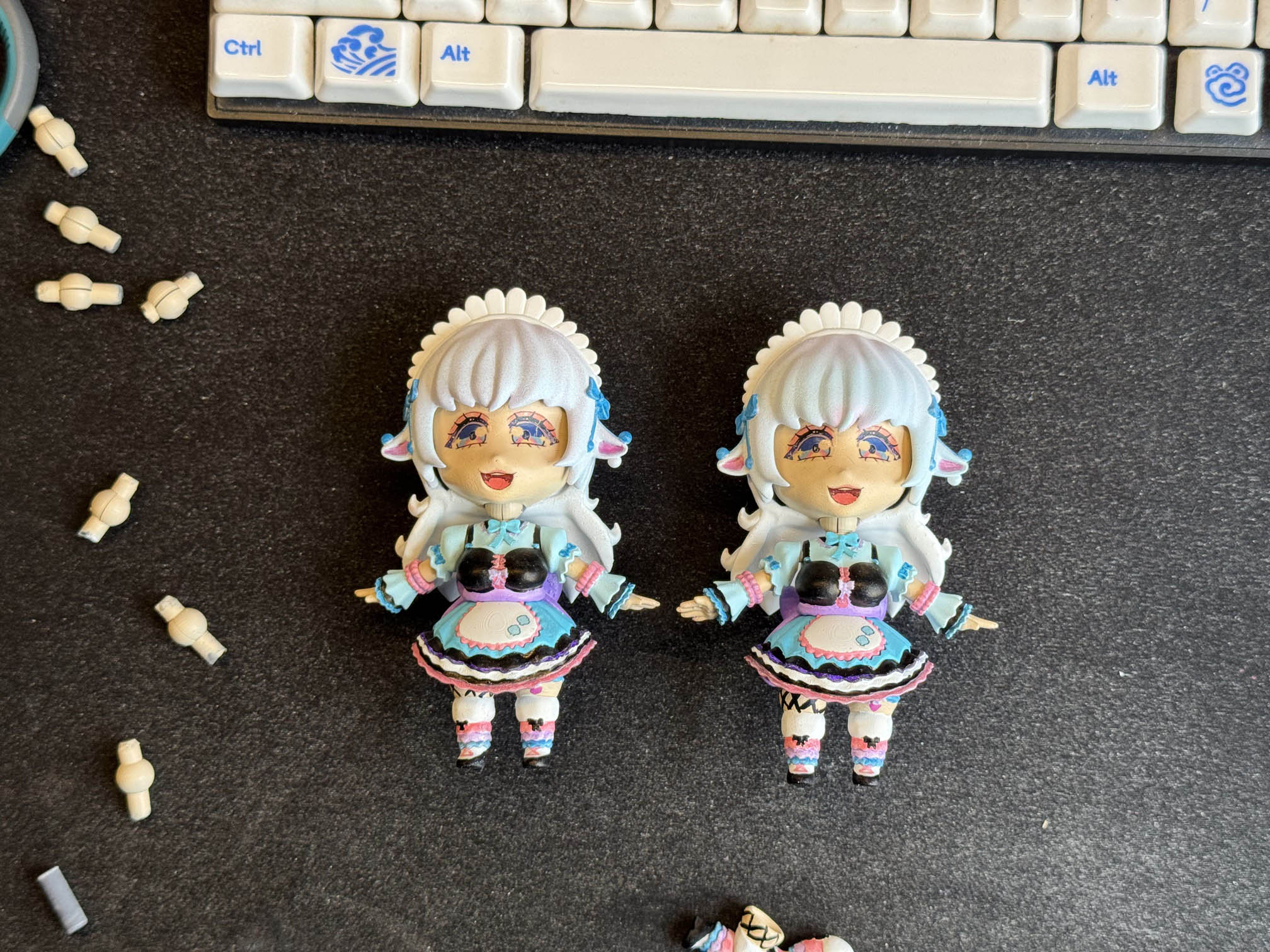 I previously wrote about my first experience building custom Nendroid from scratch. When I was invited to goto Offkai - a vTuber focused convention in San Jose California, I decided to make a duplicate of my original Nendoroid to gift, as well as a brand new one. I also mentioned in the past how I made a Graffiti picture featuring Fuwa, and she was going to be attending as well, so this was the perfect subject to make another Nendoroid.