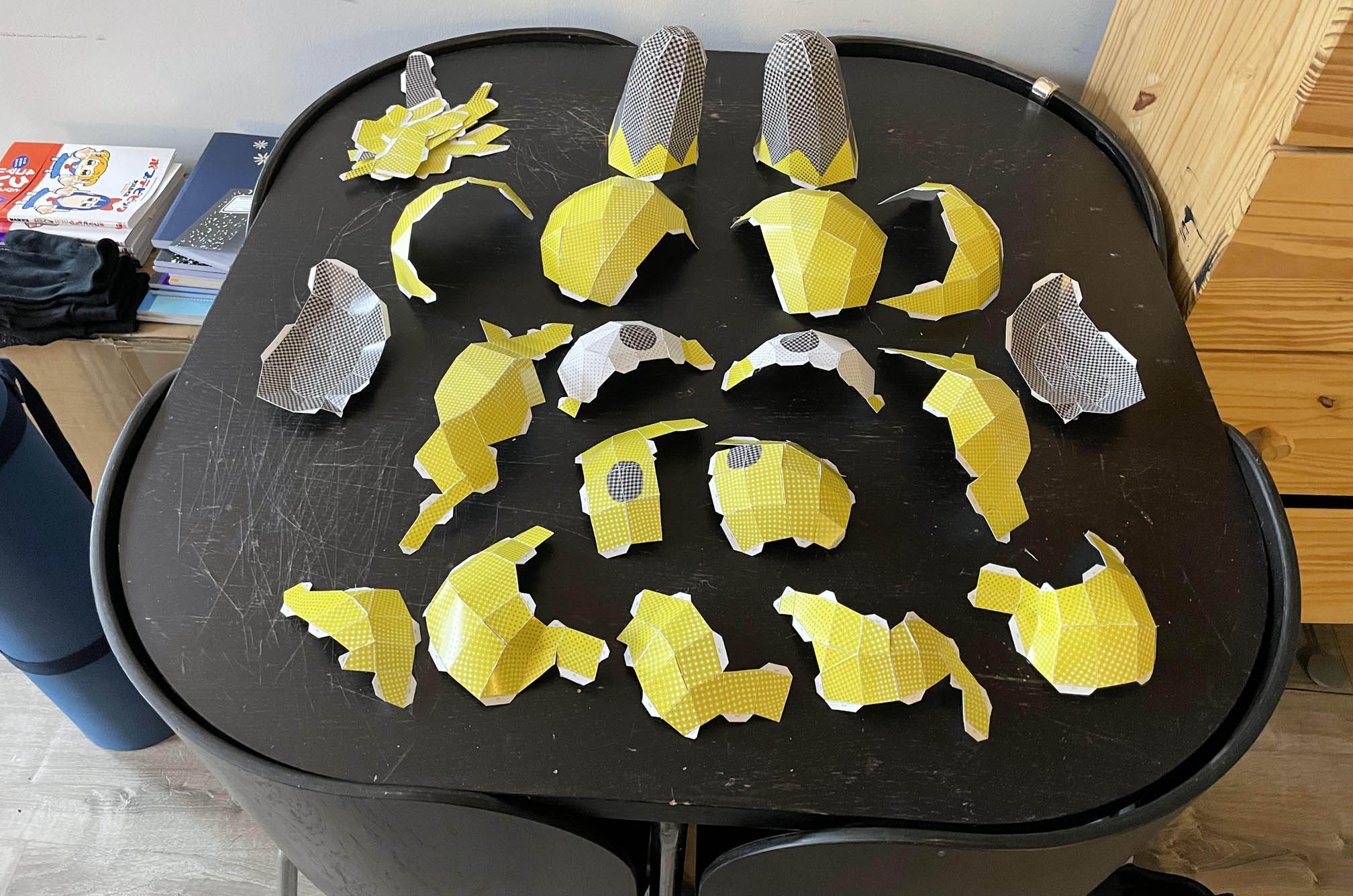 I took my base model and re-topologized it to be low poly & sent it to the printer. Once it was assembled, I spray painted it yellow and painted on the details manually. It came out great!