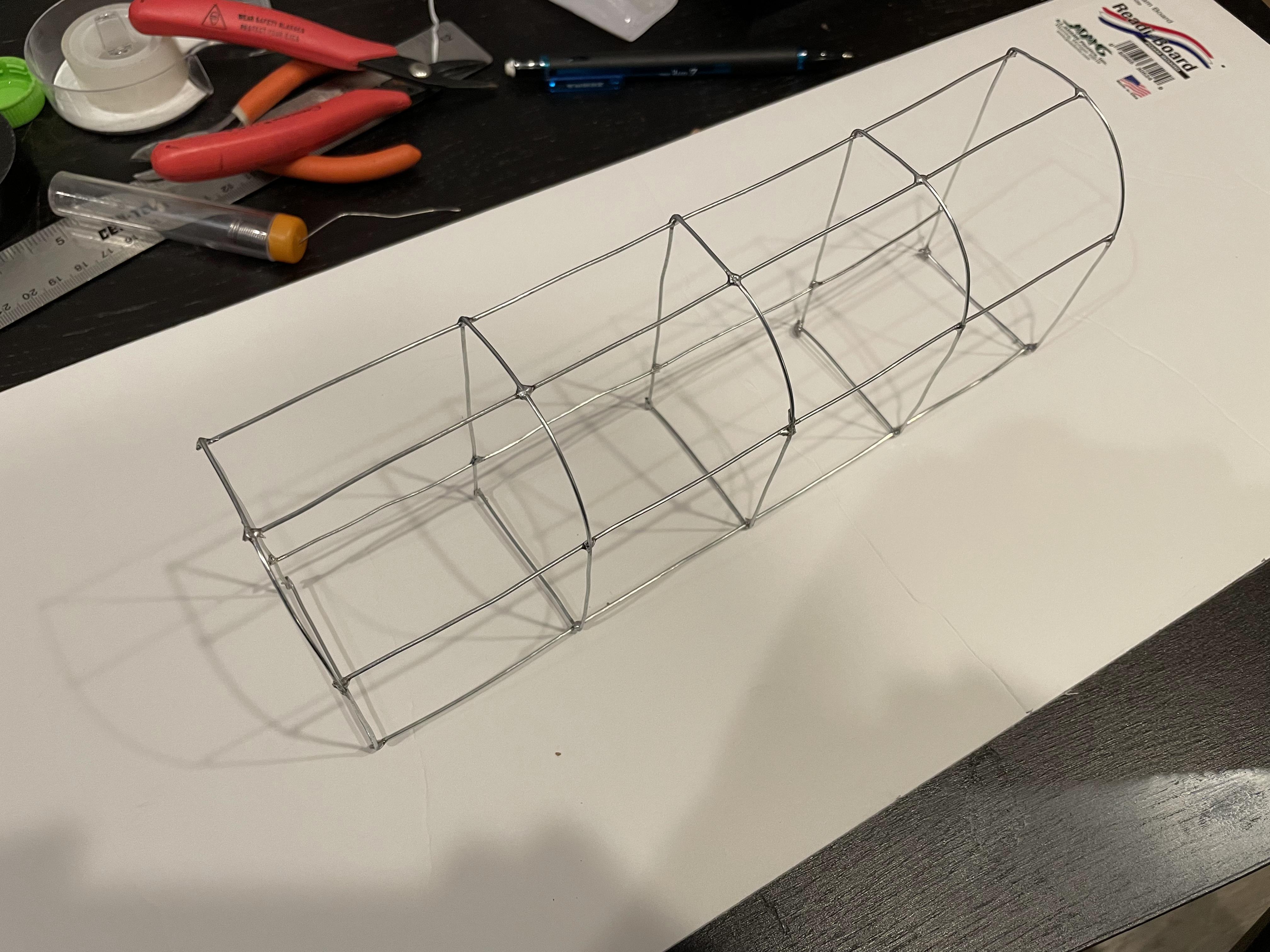 I wanted to have an NYC style "bodega" shop on one end of the diorama, so I built that next. I used some steel wire and soldered together a frame: