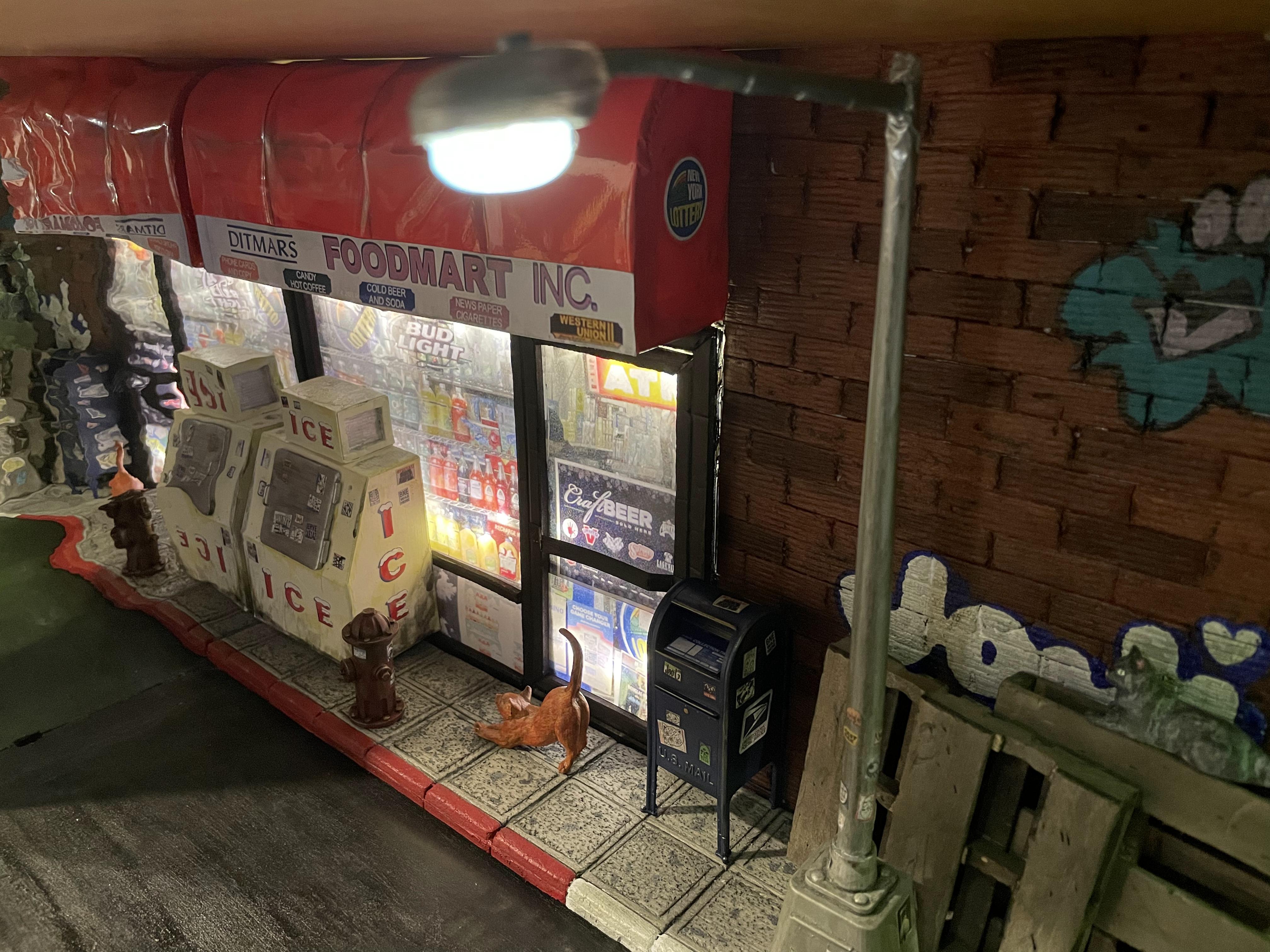 To add more details, I printed out a bunch of graffiti stickers seen all over NYC and the SF Bay Area. I also 3d printed and painted some kitties I found online.