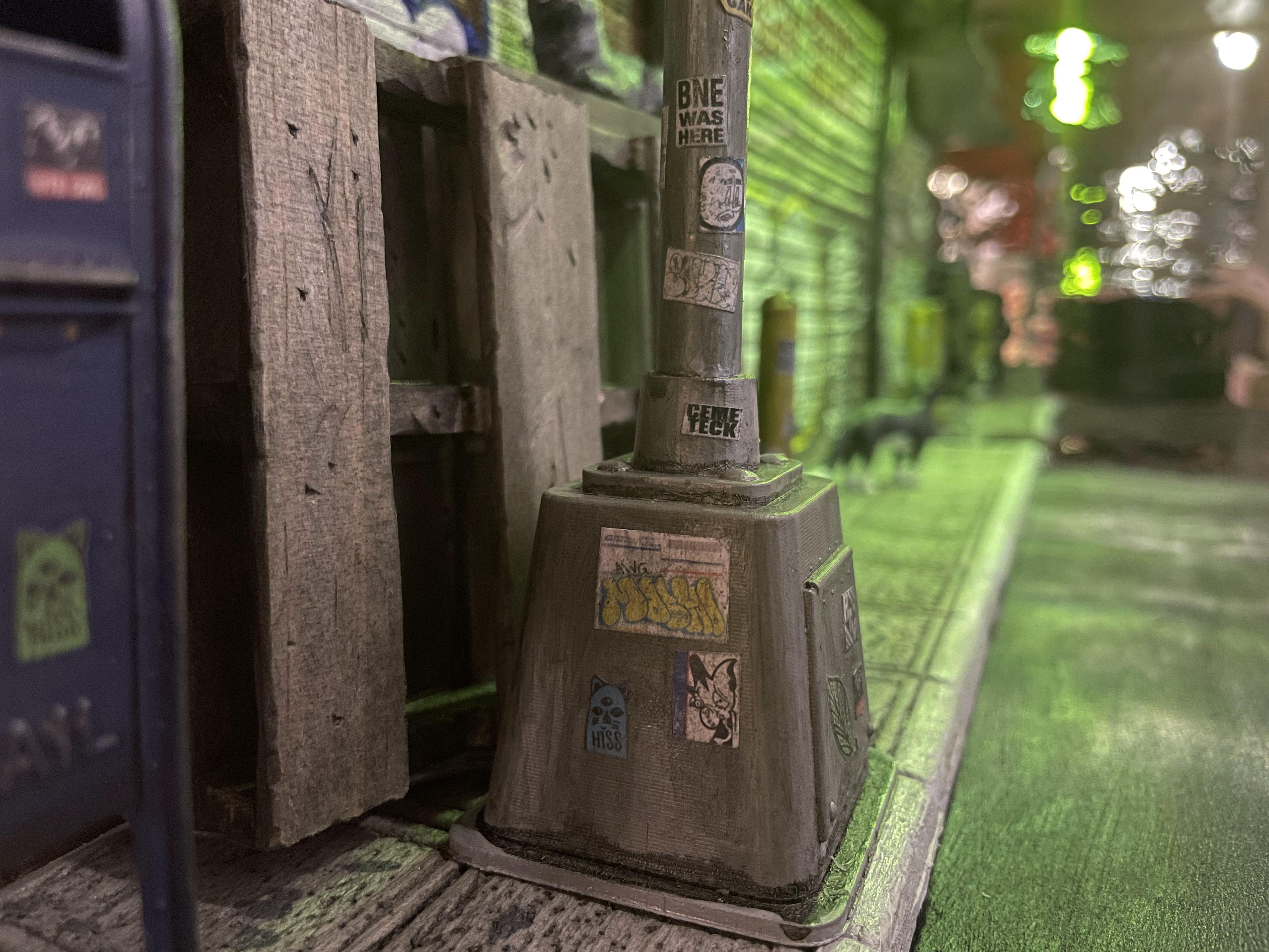 I found a fire hydrant and USPS mailbox 3d model online, so I 3d Printed them on my Elegoo Mars Pro 2, painted and weathered them.