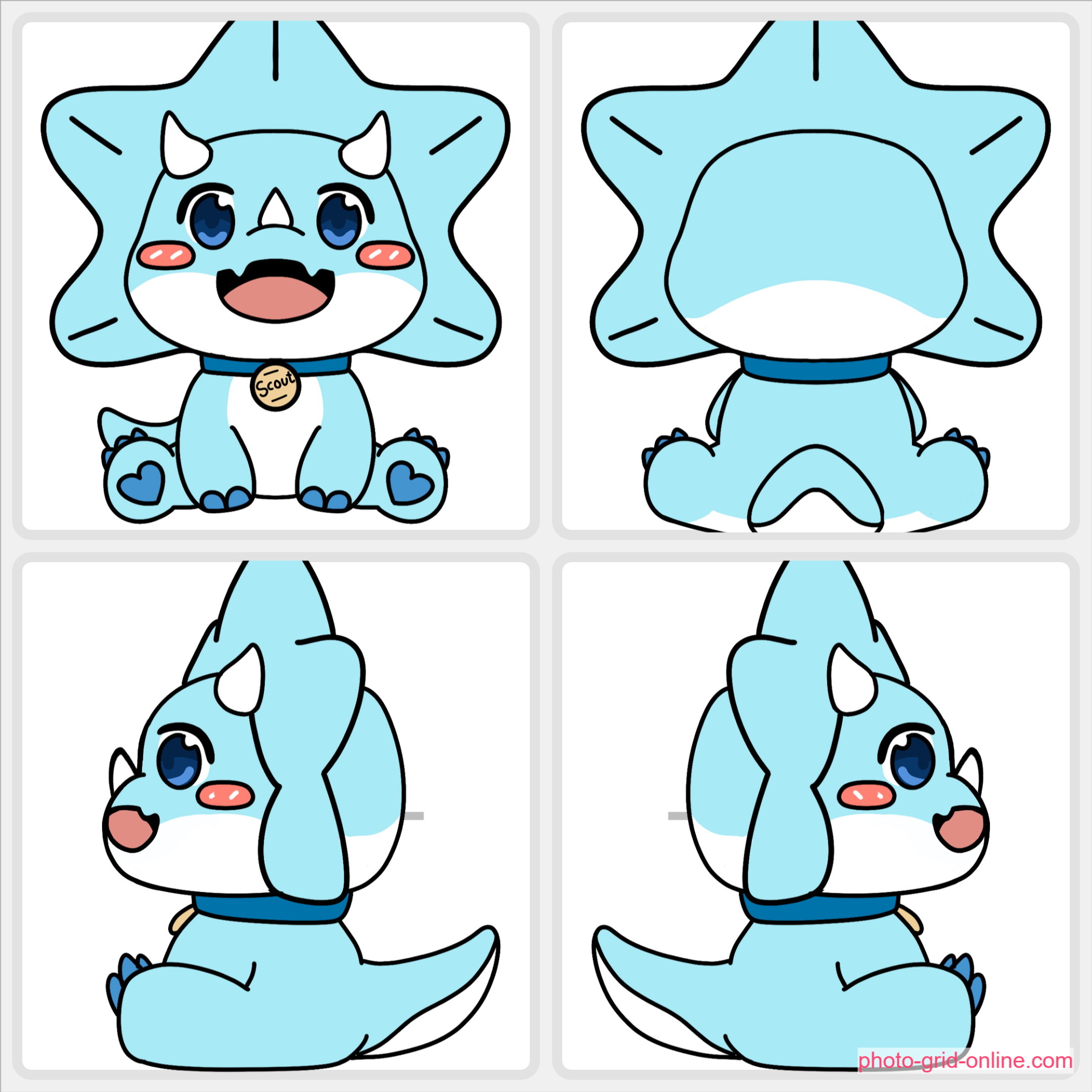 Below is the reference, mask, and wireframe for the "Scout" mascot for Skiddosaurus Rex channel.