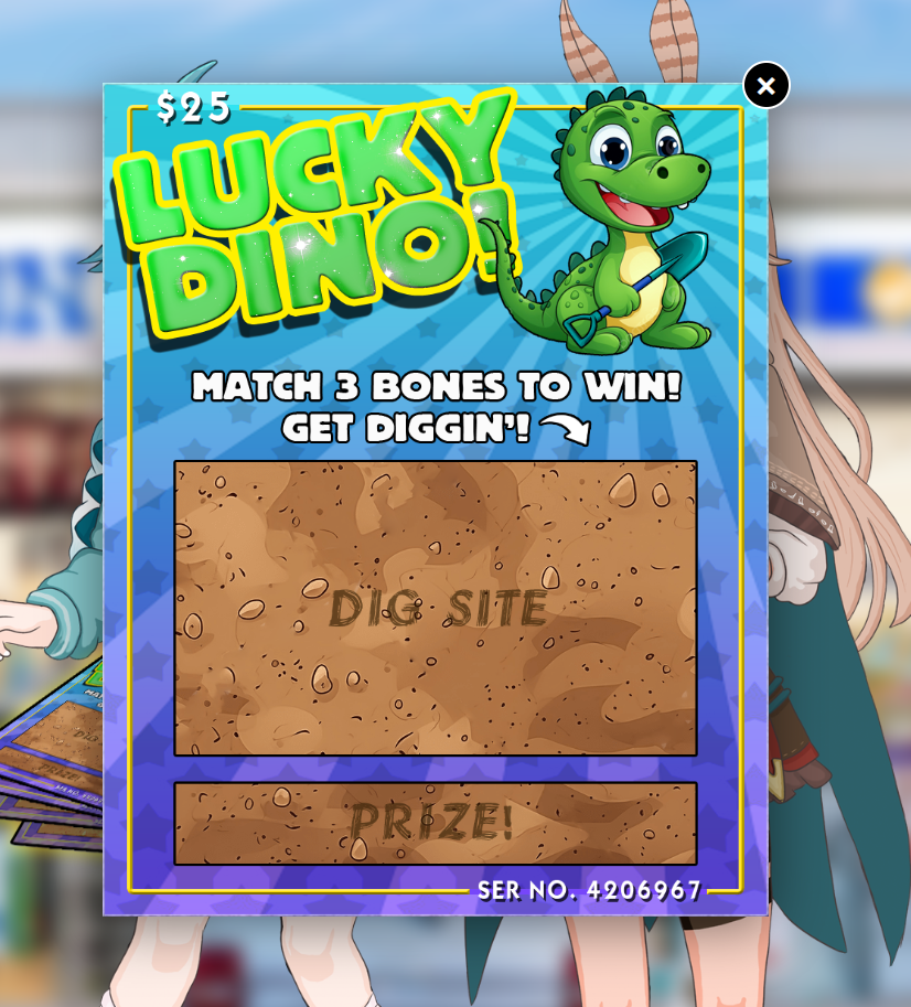 I used photoshop to make a lottery style scratcher, that's dinosaur themed to match the dino theming of the Skiddosaurus Rex community.