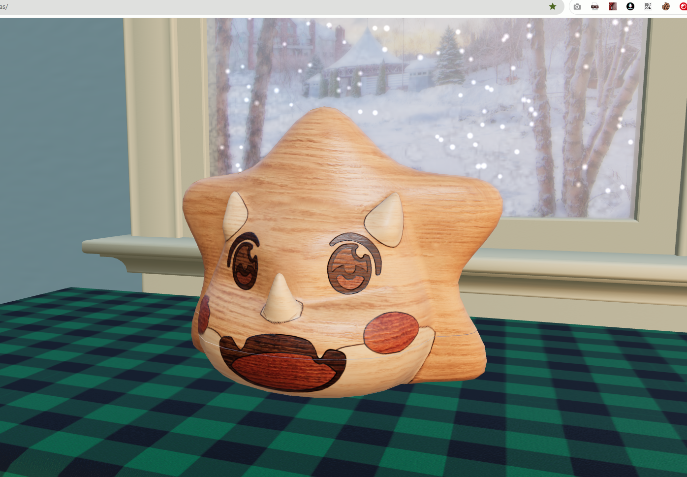 The last step was to add some polish. I added some interaction so the first thing the user does is turn a mysterious crank before the reveal that it's a music box. I added a cozy window scene with dynamic snow outside. When I had a prototype working, I started messaging all the community members with a Google form to fill out their thoughts and wishes. Once I had plenty gathered, I stuck them in a JSON file and had them start appearing around the table, written on snowflake post-it notes.