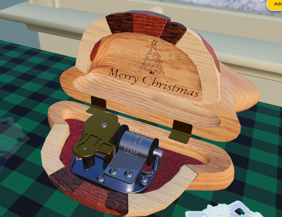 The plan was to model her mascot, Scout, as a wooden music box, and then make a programmable 3d music box mechanism that can dynamically play MIDIs when opened. As the box plays, messages from community members would slowly appear on the table, written on snow flake post-it notes.